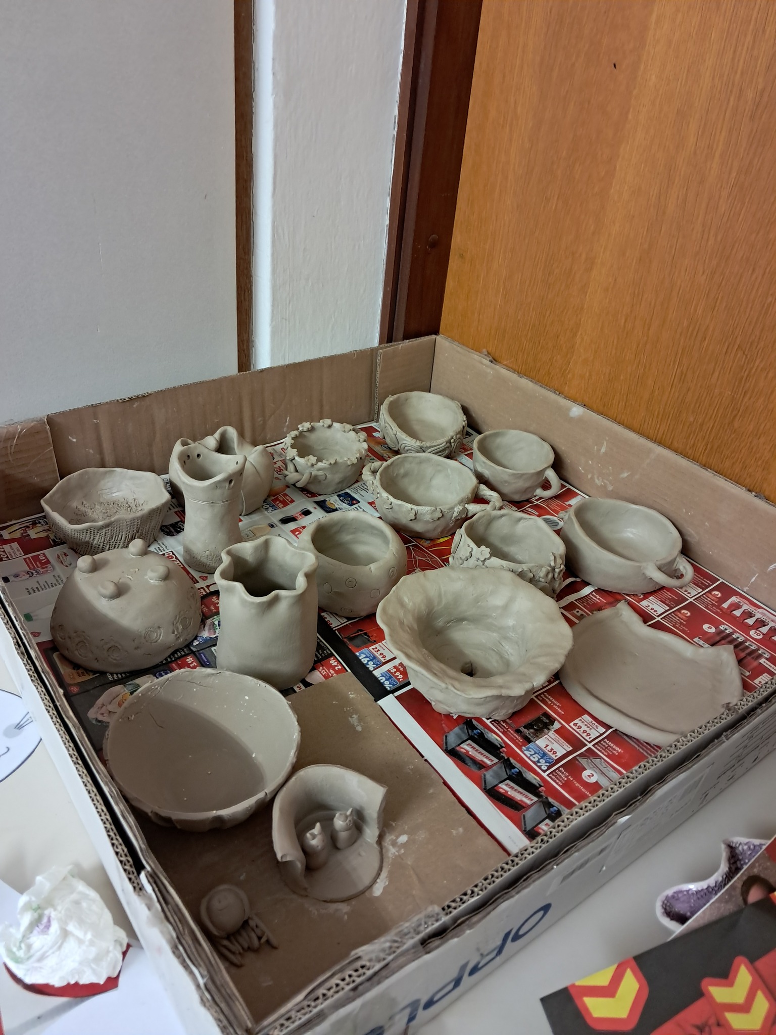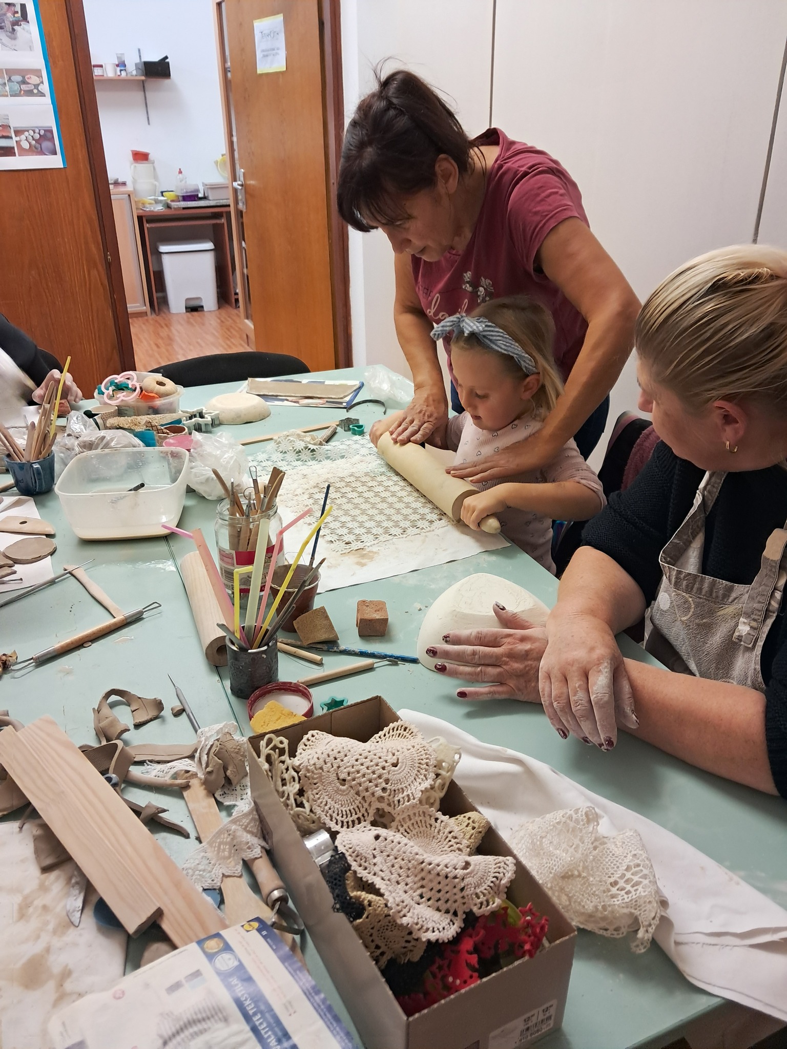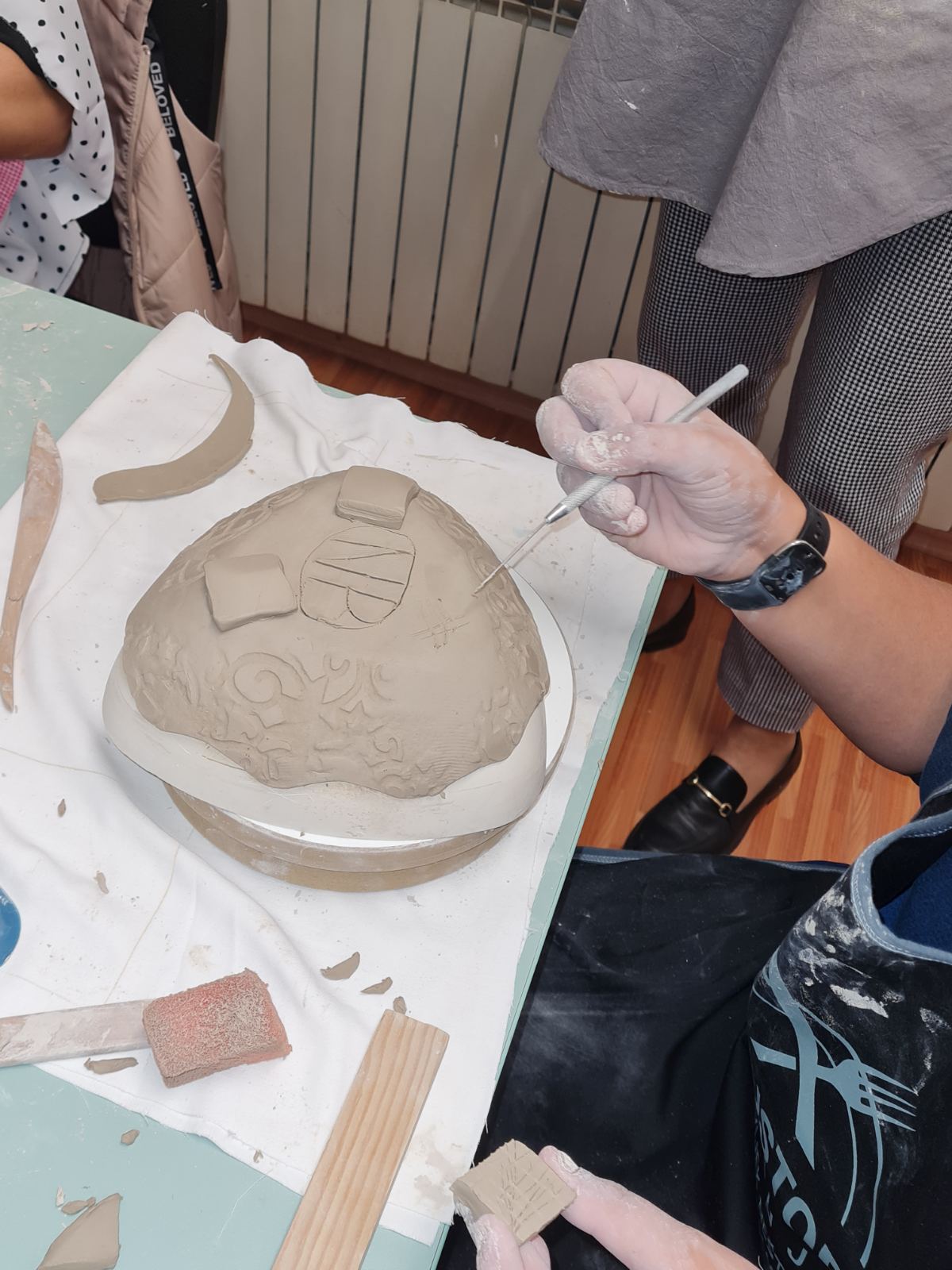Polaznici radionica upoznat će se s osnovnim tehnikama modeliranja i bojanja gline. Na prvoj radionici polaznici su koristili tehnike ručnog modeliranja gline kao što su dubljenje iz kugle, tehnika valjanja gline i izrada predmeta u kalupu.