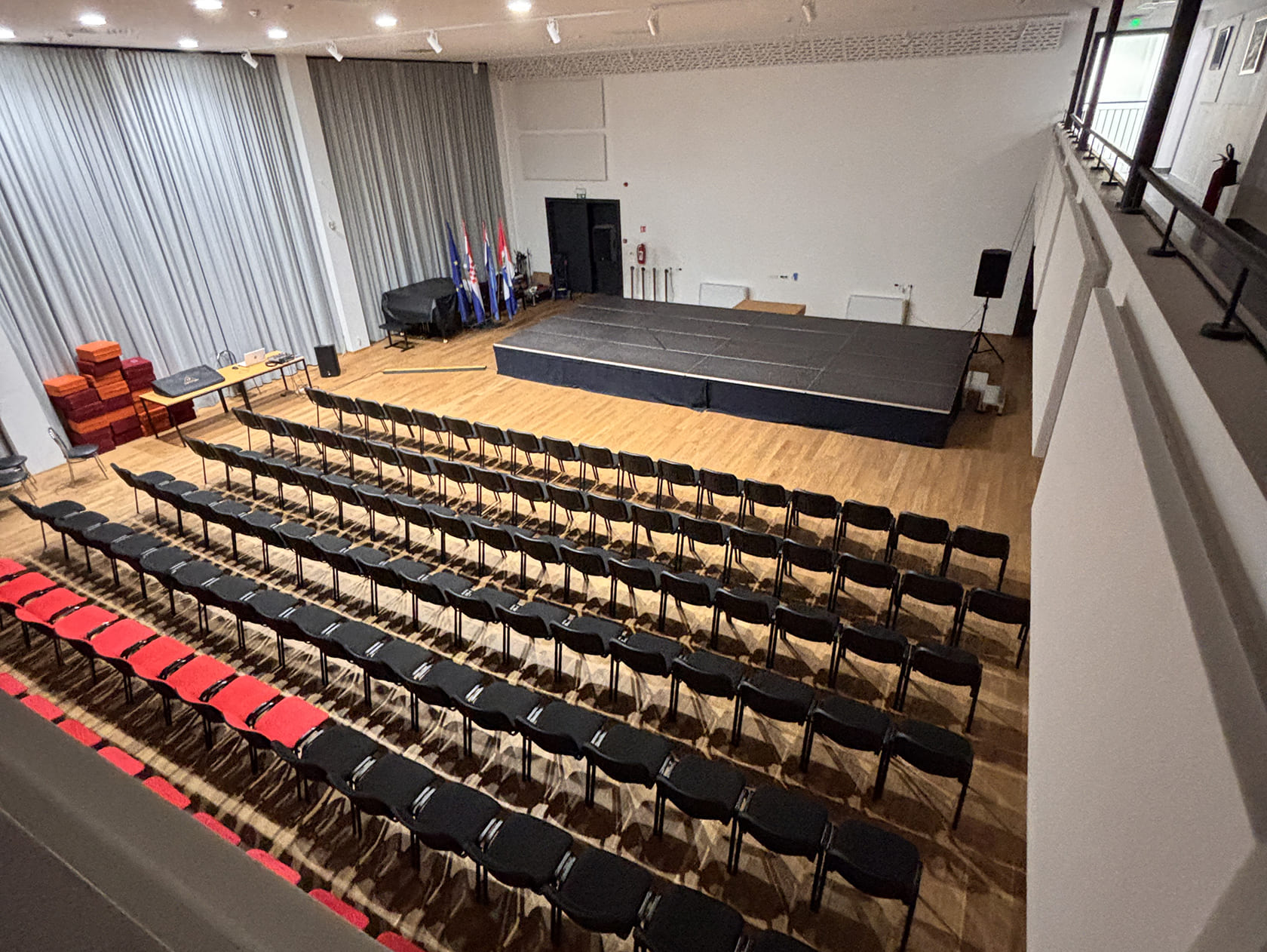 Nalazi se na katu prije ulaza u kinodvoranu i površine je 75m2. Može poslužiti za domjenke, izložbe i sl.