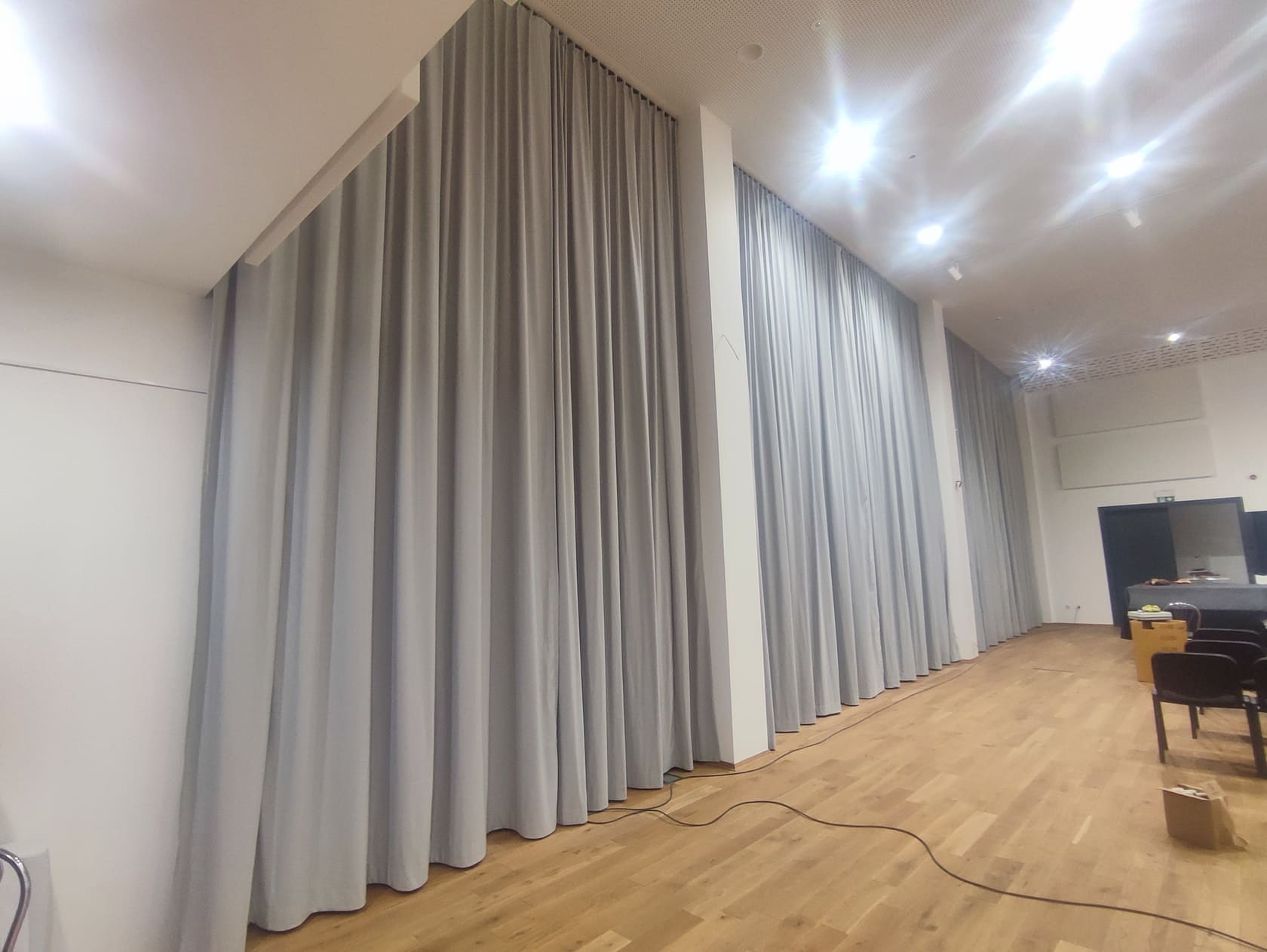 Pozornica je veličine 90 m2. Iskoristiva površina pozornice je 8 m širina i 6 m dubina i omeđena je sa zastorima bordo boje koji mogu biti i crni.
